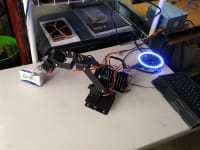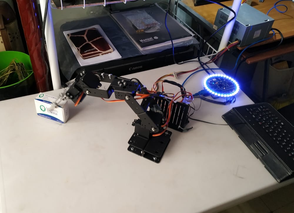 Prototype of collaborative robot arm that assist with tasks like pick-and-place an object, hold a board while I'm soldering the components, keep the keys and give them to me when I request them. Even assist people with disabilities or with Parkinson's disease, and using only a robotic arm and voice commands with "MATRIX Creator." Here you will find the minimum "Hardware" and "Software" required, the steps to follow to create an assistant with "Snips," the programming code of the board and the tests.