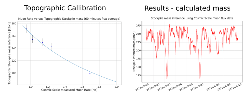 Measuring big things is always a challenge. To measure mountain size objects, the golden technique today is using drone topographic scan or ground topographic surveys. These are nice and precise techniques, but they have a few limitations: usually need human intervention, cannot be used in real time (all the time available) and only work in appropriate weather and above surface. To solve these issues we developed the Cosmic Scale, a product that uses cosmic muons attenuation data to generate continuous 3D information on big structures such as mining stockpiles.