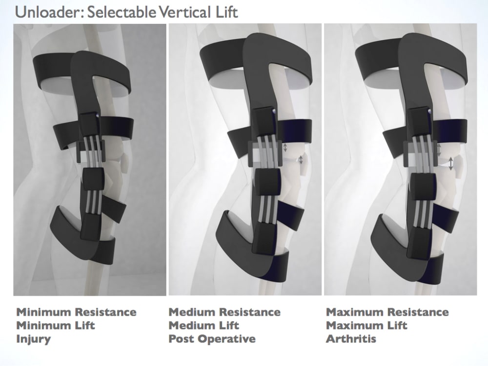ADDG has patented revolutionary knee braces that provide selectable dynamic suspension to protect the patellofemoral [ knee ] joint from osteoarthritic, chondromalacia-patellae, post surgical and prophylactic sports use.