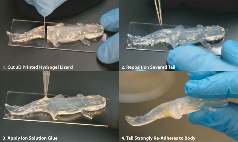 We have developed a library of “do-it-yourself” soft polymer building blocks that can be adhered together using a solution of ions and water, without any specialized equipment and expertise. Using 3D printing, we designed LEGO-like blocks that incorporate mechanical connectors and miniature plumbing, which could be used to mix and manipulate fluids within channels and chambers. These “microfluidic hydrogels” could be widely used for biomedical diagnostics and sensors, engineered tissues, as well as soft actuators and robots.