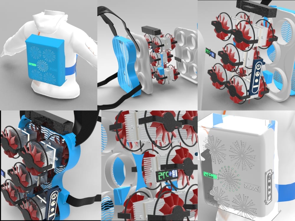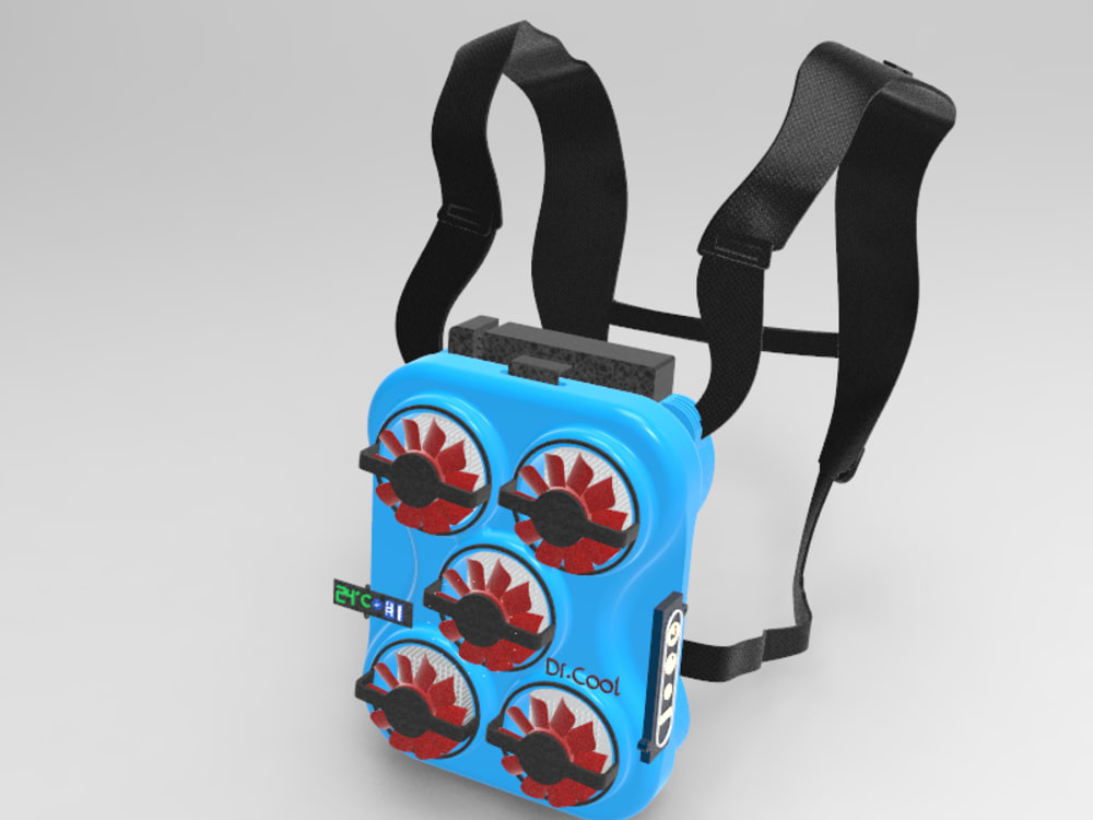 The Dr. Cool is an innovative product, introduces an air cooling system with an application of Thermo Electric Coolers. The TEC is a semiconducting device working by the principle of Peltier Effect. The TEC’s has a cold and hot junctions, by the use of heatsink(fins) the heat is distributed. Through blower fans the cold and hot air will be dissipated in and around. The cold air will be circulated inside the PPE suit and hot air will be transferred to the surrounding. By this way the suit will be cools up to 18*c within 15 minutes. The smart Ecu system ensures proper cooling around the suit and smart cut off helps the cooling system to prevent from over cooling and optimal battery power consumption. The design is made and optimized in the way to give sensible cooling inside the PPE Suit. Thermal Simulation has been conducted and optimized the heatsink design to give optimal cooling in minimal space.
