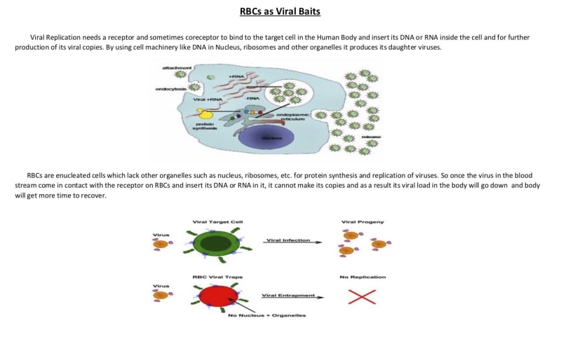 A person can be given universal blood group O negative blood with genetically engineered RBCs with target viral receptor in the body from the genetically engineered cell lines and timely patients blood can extracted and can be again given genetically RBCs so that it can function well. This will reduce viral load in the body and body will get time to recover naturally.