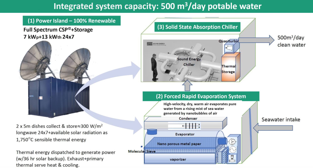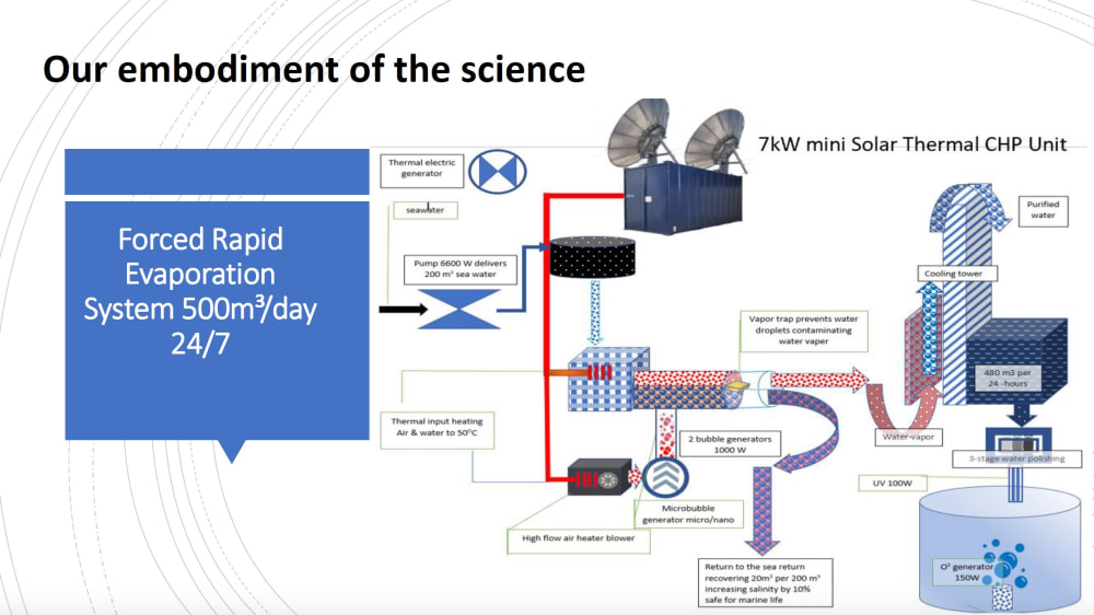 It utilizes its advanced solar thermal collection and storage technologies as a power source for rapidly removing water from agricultural run-off and sludge using a process that increases the rate of evaporation many magnitudes of that of natural evaporation. Because of this accelerated evaporation, the process can recover 500m3 (132,086 US gallons) of pure water per day. However, like natural evaporation, the process operates at much lower temperatures, 50-60°C (122- 140°F), well below the process temperatures of most thermal drying methods, thus using less energy.