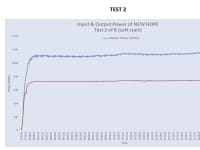 A total of five prototypes were constructed with various tracks and parameters to establish the most optimum configurations possible with the limited resources we had available. Included are the charts of four tests illustrating simultaneous input and output from New HOPE with a Zes Zimmer precision power analyzer, it was calibrated before and after the tests.