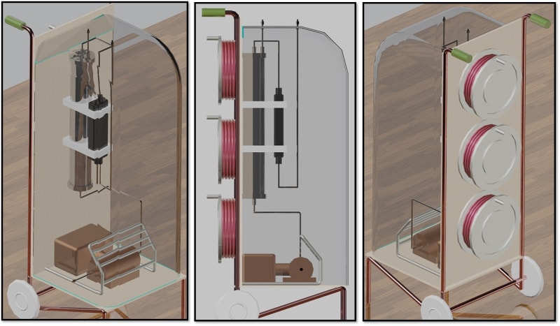 The project was thought and elaborated to be as portable as possible, in order to be used in remote places and without resources. The prototype was modeled on the 3D platform of AutoCAD.