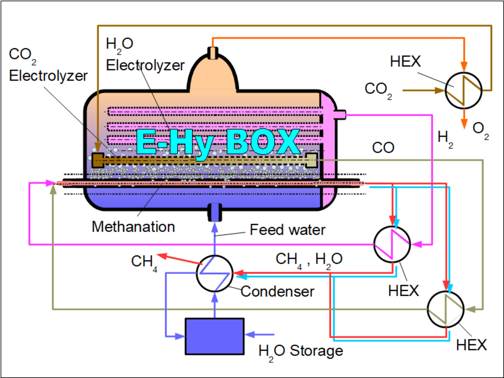 3 new detected thermodynamically possible electrochemical methanation reactions can remove the unwanted oxygen produced during methanation by oxygen ion conducting electrolytes avoiding extra hydrogen demand. - Integration of E-Hy BOX systems into closed carbon cycles (CCC).
