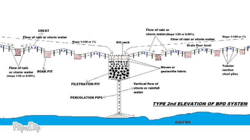 - In BPD system, The water is infiltrated into the soil and the natural soil infiltrate this stormwater and percolate into the Aquifer.