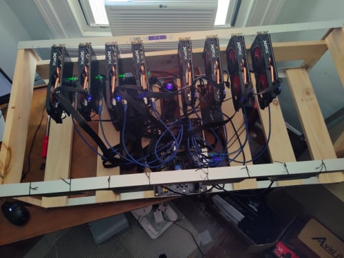 A Wealth Generator is an arrangement of graphics cards that have been arranged to perform cryptocurrency mining.