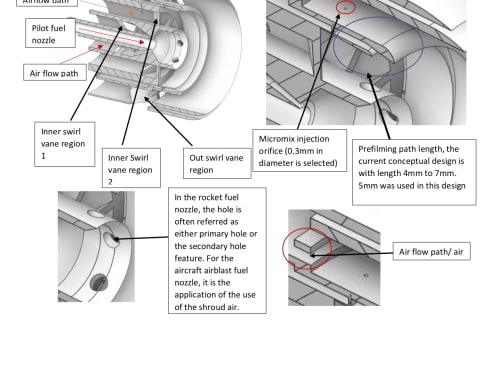 The airblast fuel nozzle is a critically important element that decided the fuel atomisation quality. The droplet size determined the evaporation rate and the combustion efficiency, and pollution formation. LDI configuration is defined as a simplex airblast fuel nozzle with the flare modification in the conventional lean direct injection design.