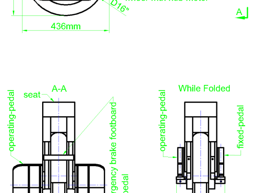 This design is a convenient and low cast transport means. It is powered by electricity and no carbon emission. Reference Figure 1, this design comprises one wheel with a hub motor, one operating-pedal, one fixed-pedal, one seat, one telescopic handle, battery pack and electrocircuit.