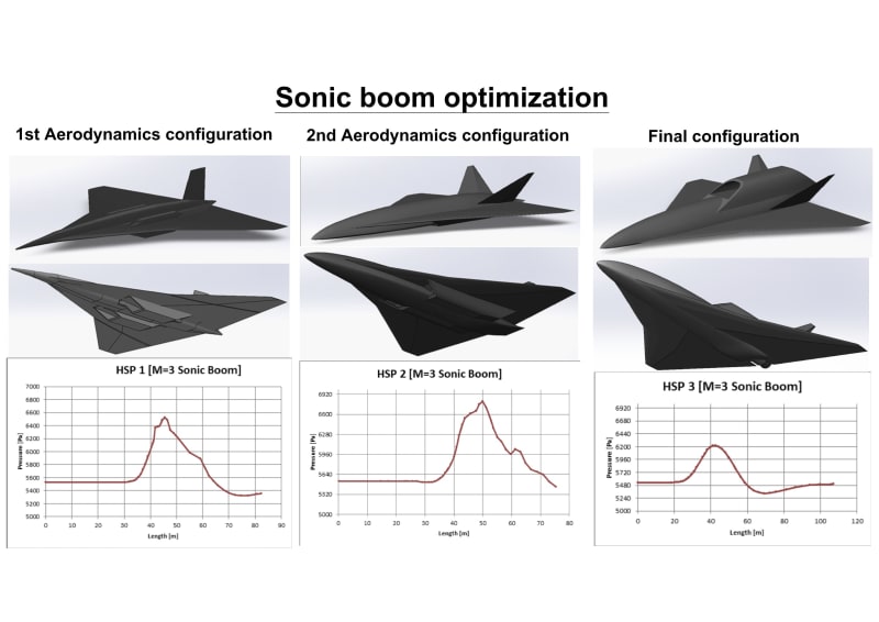 CFD was used to select the aerodynamic layout, taking into account the reduction of sonic boom. Three layouts were compared in order to choose the most optimal one. In zones with the greatest heating it is proposed to use regenerative cooling by circulating on-board fuel there. It will also be necessary to cool the bleed air for the pneumatic/hydraulic systems.