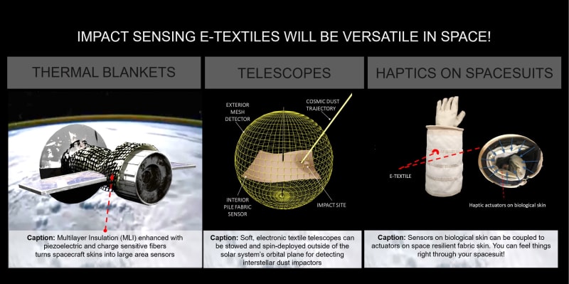We pose some ambitious and diverse questions enabled by this skin: With regard to structural-health-monitoring, can this sensor-enhanced skin localize damage on future space habitats induced by the tens-of-thousands of pieces of manmade orbital space debris and micrometeoroids too small to be tracked by radar? From a scientific perspective, can the fabric on spacecraft walls double as an enormous detector of interstellar dust, tiny messengers from cataclysmic events of scientific intrigue traveling at tens-to-hundreds of kilometers-per-second and originating hundreds of lightyears away? And excitingly, what if astronauts could feel touch and texture right through their pressurized spacesuits? In each case, vibration sensitive fabric could serve as one foundational technology.