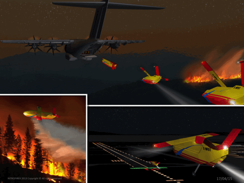 This is the case of NitroFirex, an innovative project that integrates already available defense and UAVs technologies in order to attain an operative capability that can be applied, at night, in the battle against wildfires and fumigation of drug plantations among others applications.