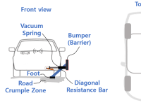 This “Shock-to-Ground Bumper (Diagonal Resistance Bar)” can reduce a significant amount of shock force delivered to occupants. This can particularly be very effective in reducing fatality in side-collision.