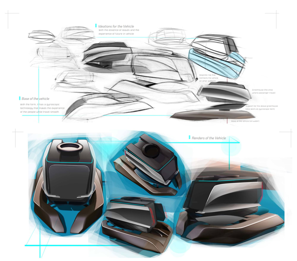 A concept has been developed for the year 2050 that shows the possibility of people connecting to each other through means of transport that is a shared mobility. The scenario is based on the new way of living in the changed environment in the year 2050. It shows people's new travel experience. It has the autonomous drive and charging for the vehicle, which would be balanced on gyroscopic technology so the user can have a great riding experience. Also,  it has the greenhouse/the place where users would be. The vehicle is detachable which helps to connect in a better way to places. The vehicle itself creates a new segment of the vehicle.