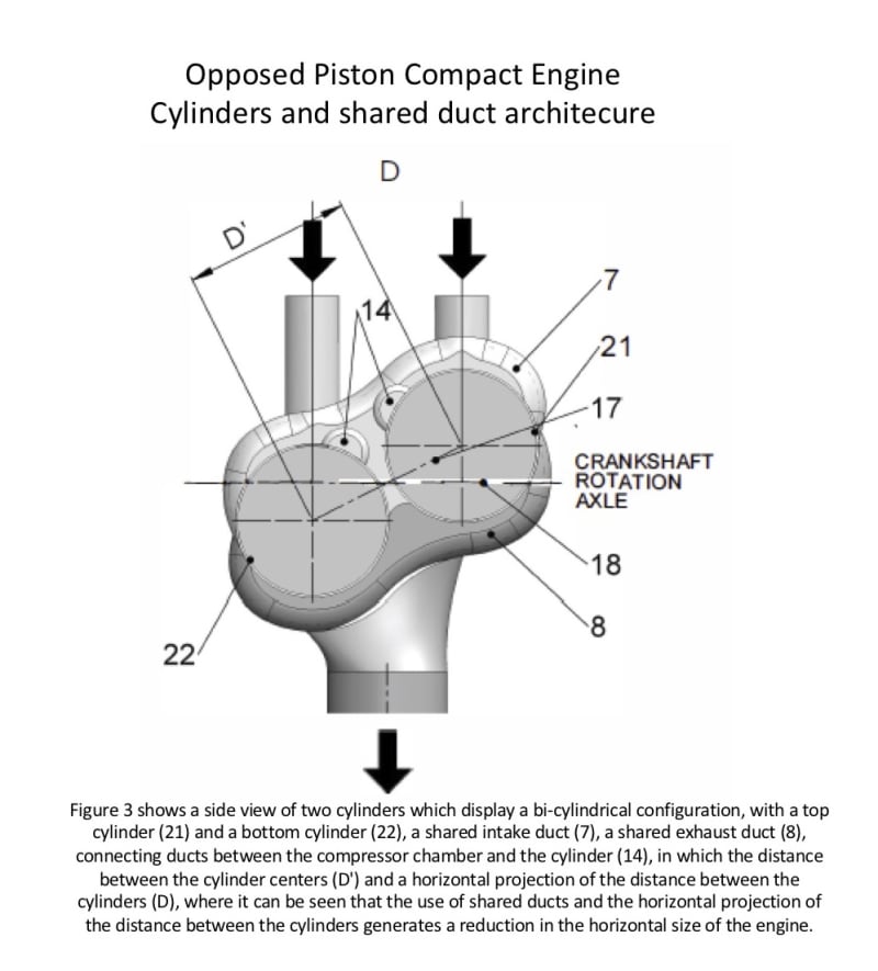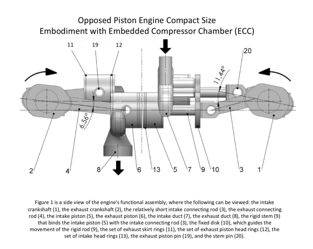 The Engine overcomes space restrictions for proper fitting of the OP-ICE arrangement in light duty vehicles.