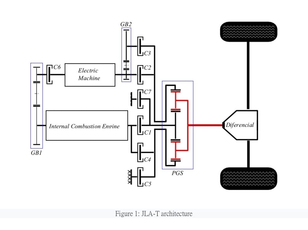Unlike other mild hybrid configurations, which only enable the administration of TORQUE available from the hybrid set (e.g., internal combustion engine (ICE) and electric machine (EM)), this new mechanism allows TORQUE and RPM to be managed, locating the performance of the hybrid set in it’s optimum. In so doing, the ICE operates at all times in a range close to its maximum efficiency, avoiding the most polluting emission ranges.