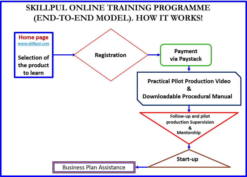 Skillpul is innovative and uniquely designed to use the online platform to reach over one million trainees in three years in different locations in Nigeria and beyond who need the pieces of training but cannot easily access them offline/physically due to distance, and costs implications and COVID-19 restrictions and constraints. These trainees have the opportunity to be trained via pre-recorded practical demonstration videos and downloadable manuals with 30-day online access at affordable fees. They also have 3 weeks of follow-up mentorship and guidance during their do-it-yourself production practical and also chances for affordable consultancy if they intend to start production from home, set up a start-up cottage or micro/small industries.