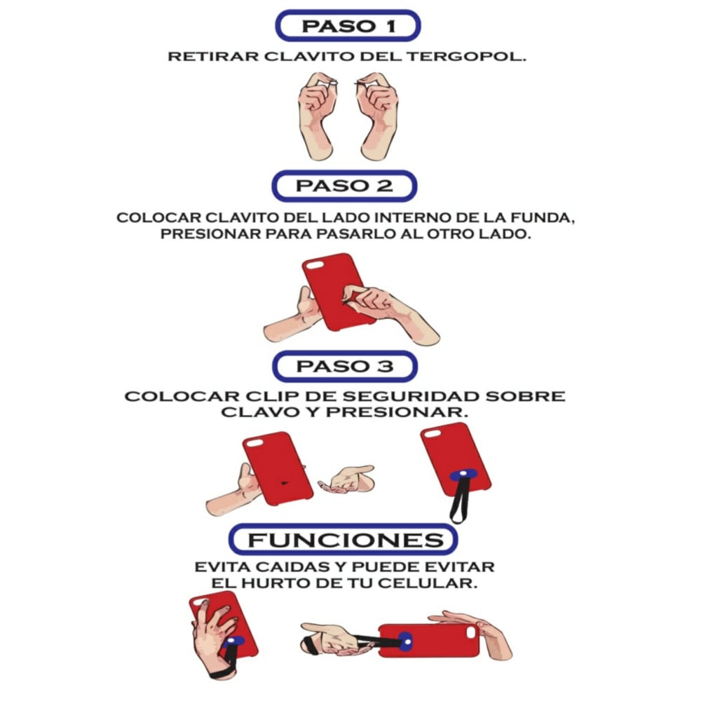 It is a security tape that prevents the possible theft of your cell phone and falls from it. It is applied very easily in the case that you already have and also works for tablets and other devices.