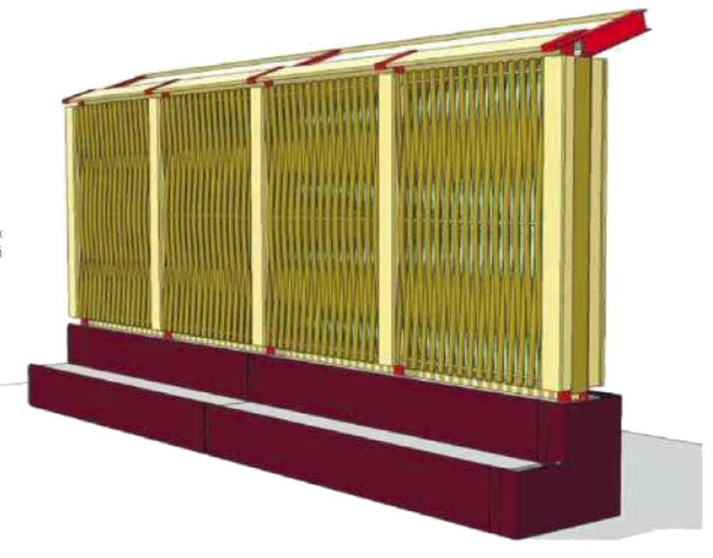 Green Screen appears as a wooden screen and not a metal screen or a heavy wall. To emphasize the furniture function, the screen is equipped with some benches, see Figure 3.