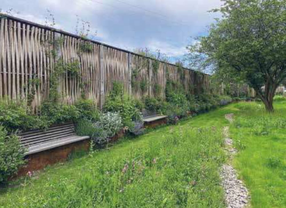 The combined noise and climate screen is developed in natural materials such as willow, larch and robinie, which create attractive urban spaces and typically do not attract graffiti and vandalism.