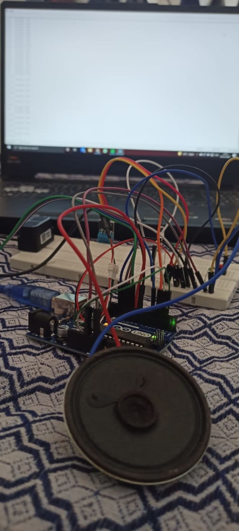 Visually Impaired people face a lot of struggles in doing day to day work. A cane type traditional device is used by them for every small work. It is very difficult for blind people to carry the device whereever they go. So we are designing a handheld device. Since it is a handheld device, the person holding it won't face any difficulty. When the user turns on the device, a LIDAR sensor starts sensing the environment around the user. If any obstacle is detected, it notifies the user that any obstacle is detected. The LIDAR sensor is interfaced with a microcontroller, Arduino UNO. A headphone and vibrator or LED is connected at the output. If there is any obstacle the headphone gives audio output that there is something ahead. A vibrator is used for the purpose of indicating even the neighbor at a certain distance of the blind person that the there is an obstacle for the blind person. We also use the the ultrasonic sensor in the bottom of the device for indicating the sudden increases or decreases from stationary height like stairs or groves and a headphone is used for audio output. DHT11 temperature and humidity sensor is utilized for giving exact weather output for the user when push button is pressed. By this way we can help blind people to live happier.