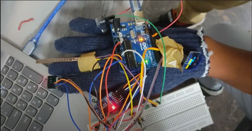 - The hand glove which, equipped with sensors are respectively connected to the controller which can detect the oxygen level and heart beat