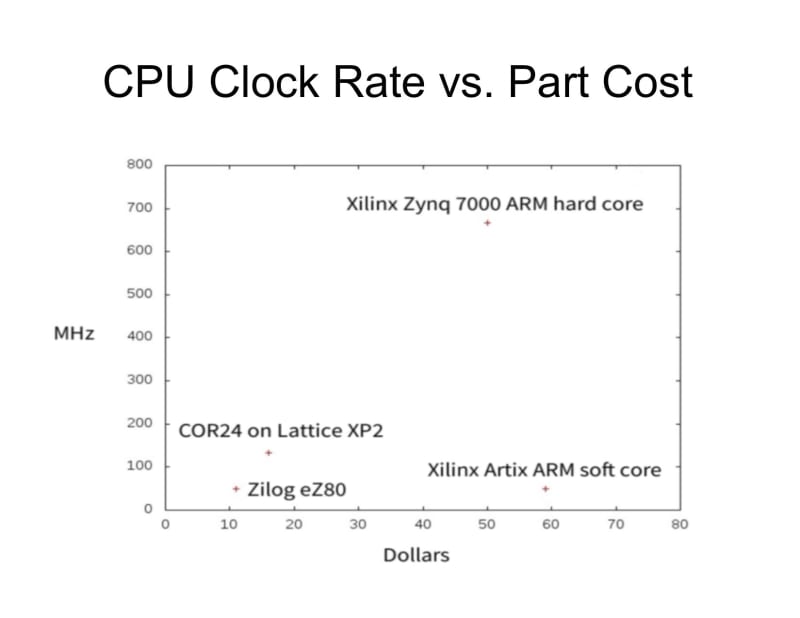 The MakerLisp COR24 microprocessor is a CPU architecture and implementation leveraging the unique performance benefits of low-cost FPGAs. This processor is a hedge against the rising costs and unpredictable availability of mass produced custom semiconductor microprocessor and micro-controller products. It is flexible enough that it can be implemented on a large number of FPGA products from many vendors, and is well suited to a particular "hole" in the design space that avoids the inevitable up-scaling of system costs and complexity as industry consolidation limits customer choice and forces designers to convert their products to adapt to more generic "standard," but ultimately less efficient, platforms.