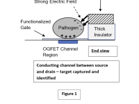 This new technology combines solid-state electronics with bio-molecular probe technology, resulting in a highly sensitive sensor that can detect the presence of a pathogen within several seconds, electronically and without target preparation or amplification. The sensor can be incorporated into devices for many diverse applications. The rapid response will eliminate time lag currently experienced with testing for the presence of pathogens such as COVID-19.