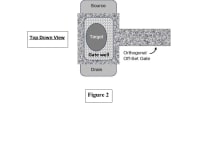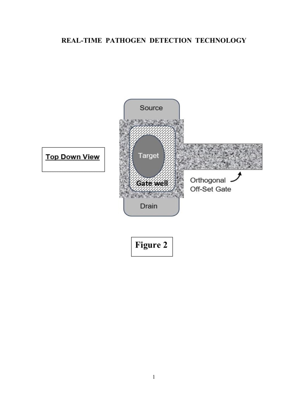 The relative permittivity of microbes is extremely high at low frequencies, Escherichia coli at 10 Hz is about 800,000. An empty gate well with a specified gate potential will remain off. If a target microbe is immobilized in the gate well, the transistor turns on. Figure 2 is a top view showing how the upper gate surrounds the gate well.