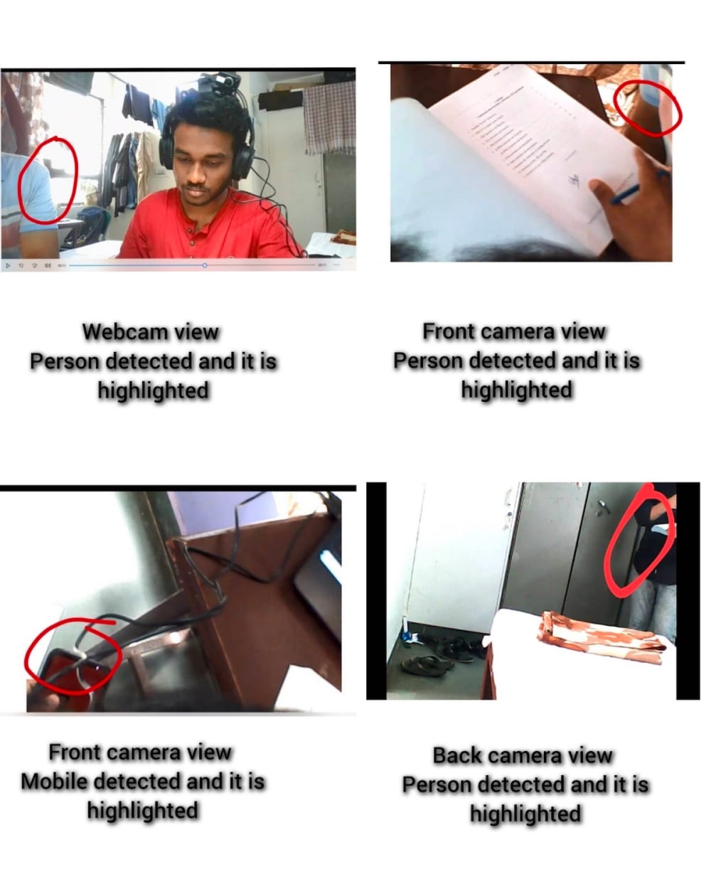 The currently available alternative doesn’t employ local processing of video and audio feed because it directly transmits the data to a remote proctor and the presence of Blind spots in the available online proctoring system makes it less efficient and effective. The improvement in our model is to preprocess data locally and send only the part the algorithm finds suspicious. Also, the idea to come up with a device sensing electronic gadgets has been never tried before. Adoption of our proctoring system in online exams brings credibility to the whole activity. For the exam conducting authority the cost of hiring proctors would comedown, as our product minimizes the number of proctors required.
