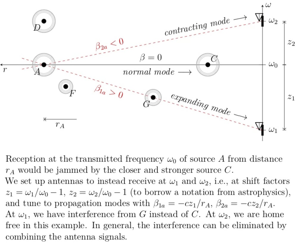 The modes provide aliases of all signals, regardless of waveform and modulation, at frequencies changed by the mode rate β times travel time r/c from their sources. We have PCT patents recently issued in China and the US, with other jurisdictions pending, for these modes and their reception with imperfect oscillators, and are working on prototype design.