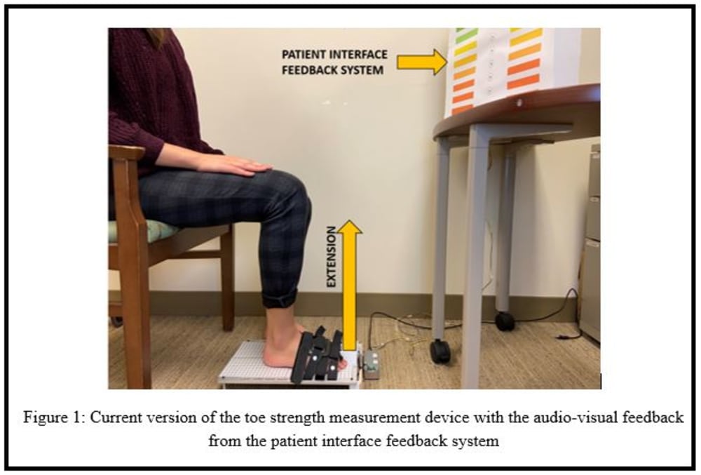 - The device can measure force up to 100 N, with an accuracy of ±0.40 N. The device is also capable of computing multiple parameters to quantify toe strength.