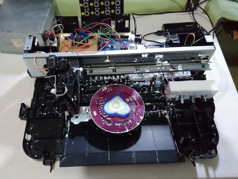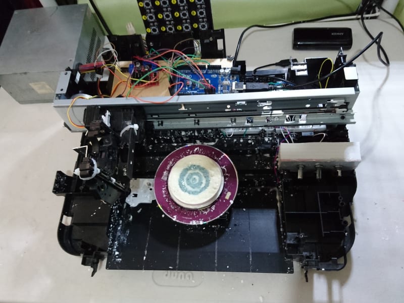 1. Reuse and modify an old printer to place and organize the components and supplies for this project.
