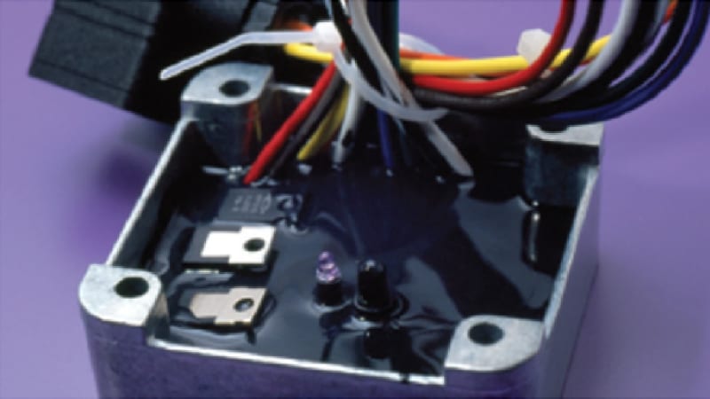 The main impact of TC-6015 is providing exceptional thermal management with no filler sedimentation, primerless self-adhesion, lower density, and long-term reliability. These advantages provide sustainability in manufacturing and application. No filler sedimentation, even with very low viscosity, is accomplished by patented “physical gel” rheology promoters, eliminating the conventional need to redisperse before application. This is significant as redispersion is difficult for large packaging sizes and typically risks air entrapment. Any air bubble incorporation can be highly detrimental to module thermal management. Compared to traditional 1.5 W/mK encapsulant which have specific gravity of ~ 2.65, TC-6015 can offer a lighter solution with specific gravity of only 2.25 and still maintain good thermal conductivity. The device using TC-6015 can be ~ 20% lighter which can mean energy saving accumulation, especially in Electric Vehicles. TC-6015 was designed to have robust self-adhesion properties against many common substrates, which enables customers to eliminate extra step of applying solvent-based primers on the entire module. The self-priming properties of TC-6015 help save time and money and are also environmentally beneficial.