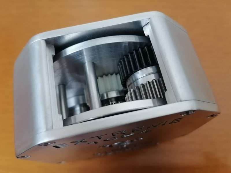 The EXtreme Transmission Ratio Efficient MEchanism (EX.T.R.E.ME.) is a simple planetary mechanism with a pair of standard module gears and a pair of gears with involute profile but non-standard module.