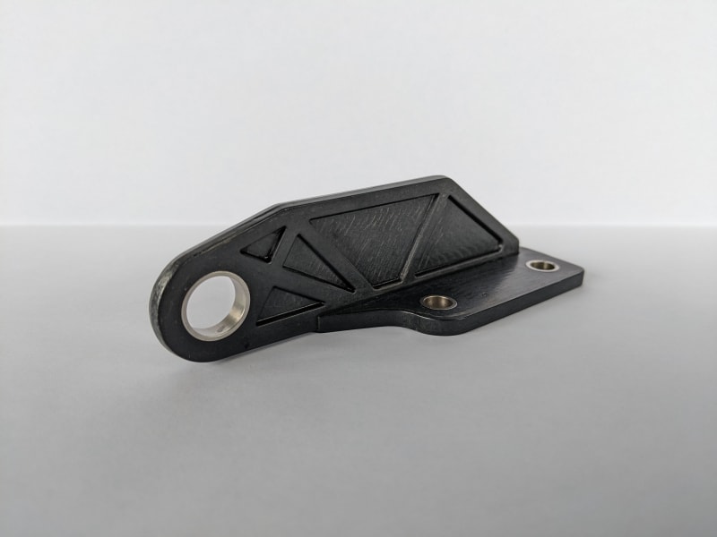 This step uses a mold tool unique to the part — typically machined aluminum for a short-run job, or stainless steel for higher volumes — to compress the printed layers and fiber together, resulting in a low-porosity, dense and strong final composite piece. Parts achieve less than 1% void content through the Fusion process. As an added benefit, bushings, bearings and other inserts can be added to parts before compression molding and secured into place during this step, reducing assembly on the other side. The process also allows multiple sub-parts to be assembled and fused into one part with a complex fiber orientation as well as preform reshaping in order to create parts with out-of-plane fiber orientation.
