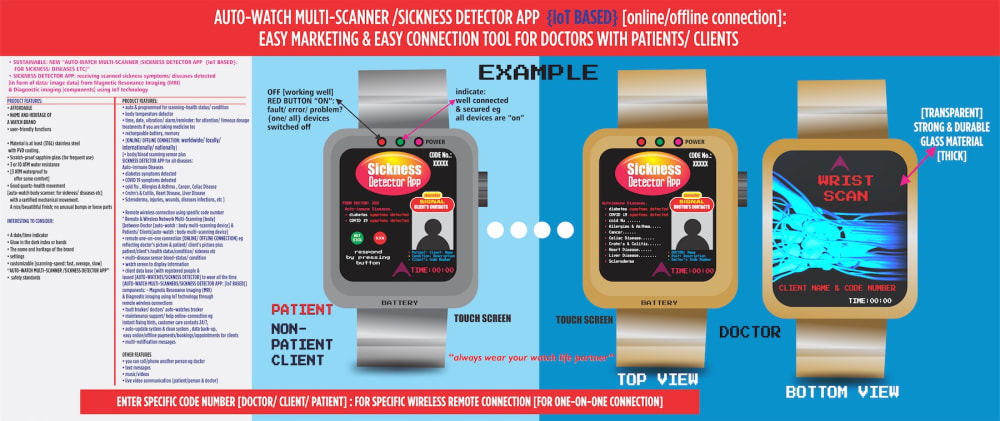 PRODUCT IMPROVEMENTS: [AUTO-WATCH MULTI-SCANNERS/SICKNESS DETECTOR APP: [IoT based]:
