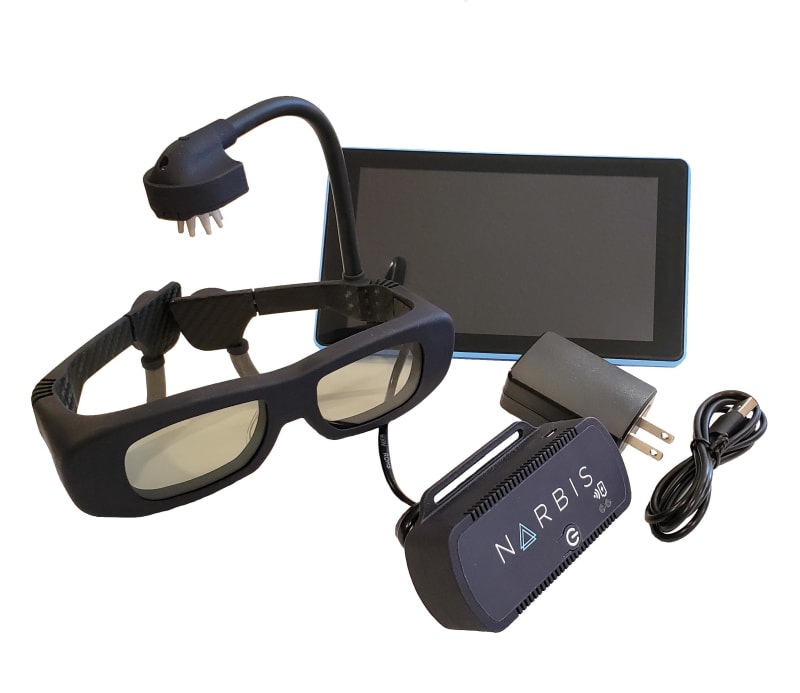 Narbis smart glasses use neurofeedback at home to train your brain to focus, and eventually learn to concentrate on demand. Sensors in the Narbis glasses and a NASA-patented algorithm track how relaxed, distracted, and focused you are to help the brain practice focus and attention.