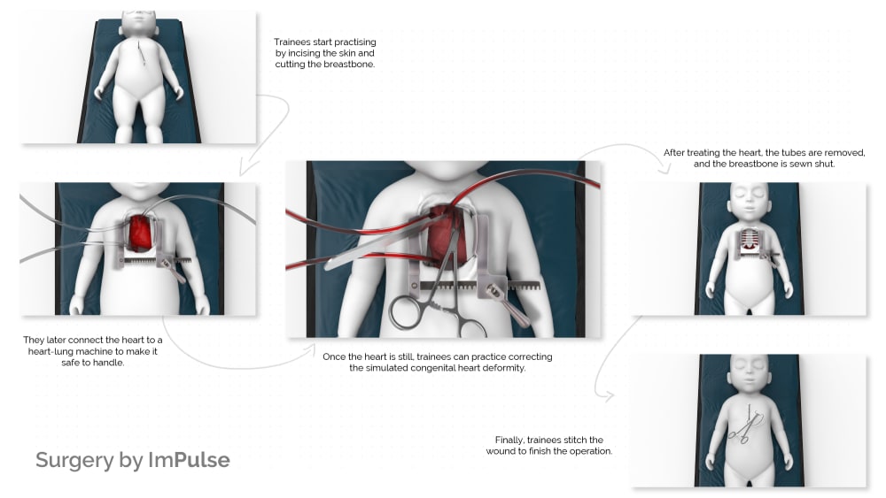 Congenital heart diseases are the most common form of birth deformities that require surgical intervention. Given the nature of infants, pediatric cardiac surgeons need to master their craft and develop advanced psychomotor skills to save such delicate yet complex organs. However, with its opportunity-based education, the current paradigm of surgical training programs fail to provide trainees with adequate chances to develop those skills. Furthermore, existing training programs are not feasible to implement in politically and economically constrained areas, making it impossible to establish highly specialised and well-trained local surgical teams.