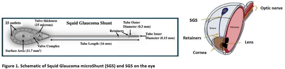 In the USA alone, direct costs related to glaucoma reached $ 5.8 billion annually according to a 2013 report. The global glaucoma surgery market was valued at $818 million in 2020, projected to reach $6.5 billion by 2030 with a compound annual growth rate of 24.6%. At present, due to the complexity of the procedures, complications, and invasiveness of the bulky GDDs, only 40% of glaucoma patients undergo surgical interventions. The less invasive SGS implant would make early surgical intervention an option to wider sections of the glaucoma population with presumably better outcomes, thus preventing blindness.