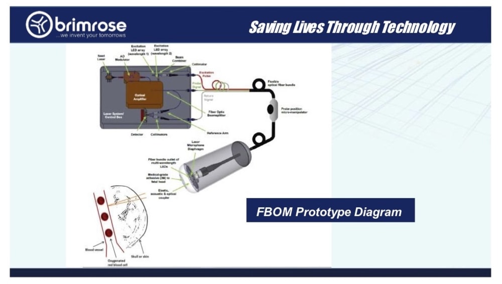 The lack of oxygen to the fetus during delivery is the Number 1 cause of infant mortality and lifelong brain disease such as cerebral palsy. The innovation comes with the fact that this is the only instrument used during delivery that measures oxygen (not heart rate) in the fetus noninvasively. Brimrose and Hopkins already have received a Phase 1 SBIR grant from NIH for this device and are applying for Phase 2 funding. The instrument is still in early prototype stage. Hopkins researchers have already been able to use it to measure oxygen levels in piglet blood from 0 percent to 100 percent in 10 percent intervals. The "laser microphone" process can amplify signals several magnitudes above other levels, providing the ability to use lower amounts of light inside the human body to detect the signal.