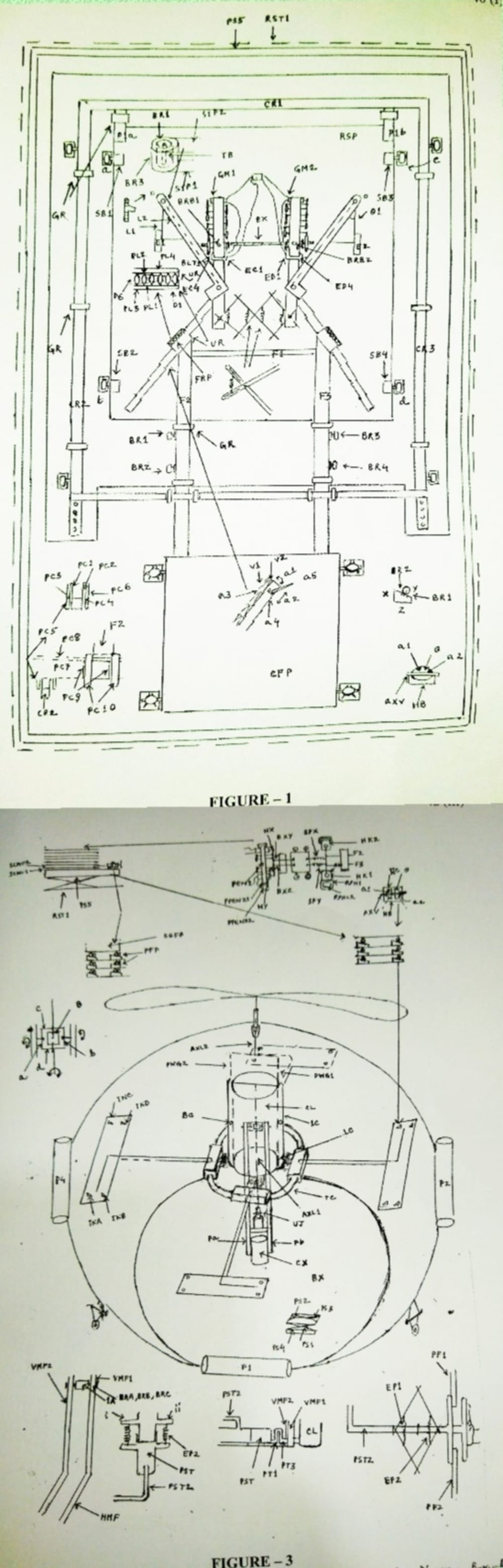 4) Propellar of helicopter is fixed by axle AXL2 at the lower part of CL only on the two sides such that any tilting or imbalance due to wind or other external imbalanced forces tends to be directed straight at support for axis of rotation on the modified gyroscope frame.