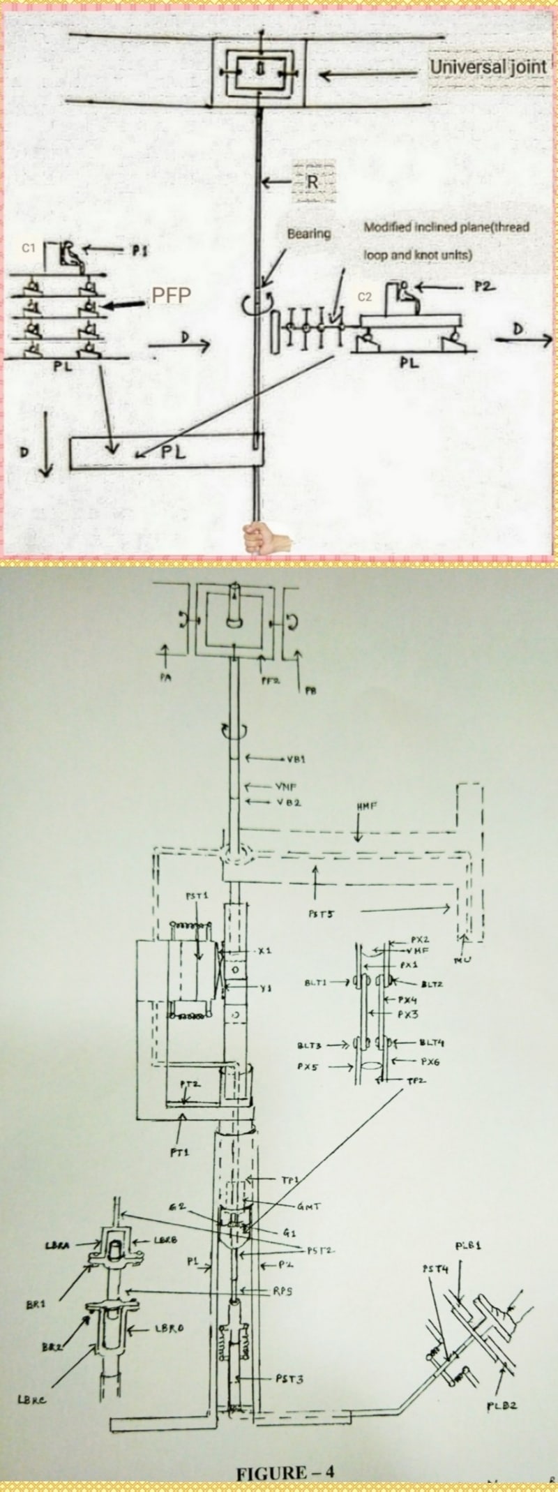 3) Active balance mechanism to initiate rotary motion of horizontal part of mounting frame is made simple and efficient by force transmission and mechanical advantage of modified hydraulic pistons.
