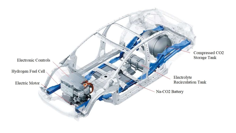 Mg-CO2 batteries can theoretically store 10 times as much energy by weight as commercial lithium–ion batteries. With an energy density of about 1000Wh/kg, Mg-CO2 batteries have the potential to surpasses current commercial counterparts. Lithium-ion batteries that are used in Tesla electric cars have only about 180Wh/kg of energy. The energy storage capability of Mg-CO2 batteries is very important as they potentially have high energy storage capability, but there is another overlooked advantage - hydrogen production. The production of hydrogen in metal ion batteries using water based ectrolyte is a natural process. In the past battery designers worked hard to surpress hydrogen generation using a variety of chemicals. Our innovation is to take advantage of the batteries natural hydrogen production to feed a fuel cell, thereby increasing over all energy storage and production of new energy.