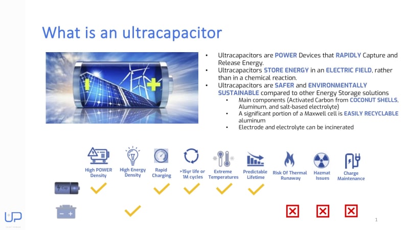 Long-term markets include our UP Time portfolio of products that will support UPS and industrial grid markets with frequency stabilization, peak-loading/shifting applications. Hybrid solutions with the short duration benefit of an ultracapacitor and the long duration of a battery will provide the needed bridge to low maintenance sustainable energy storage solutions.