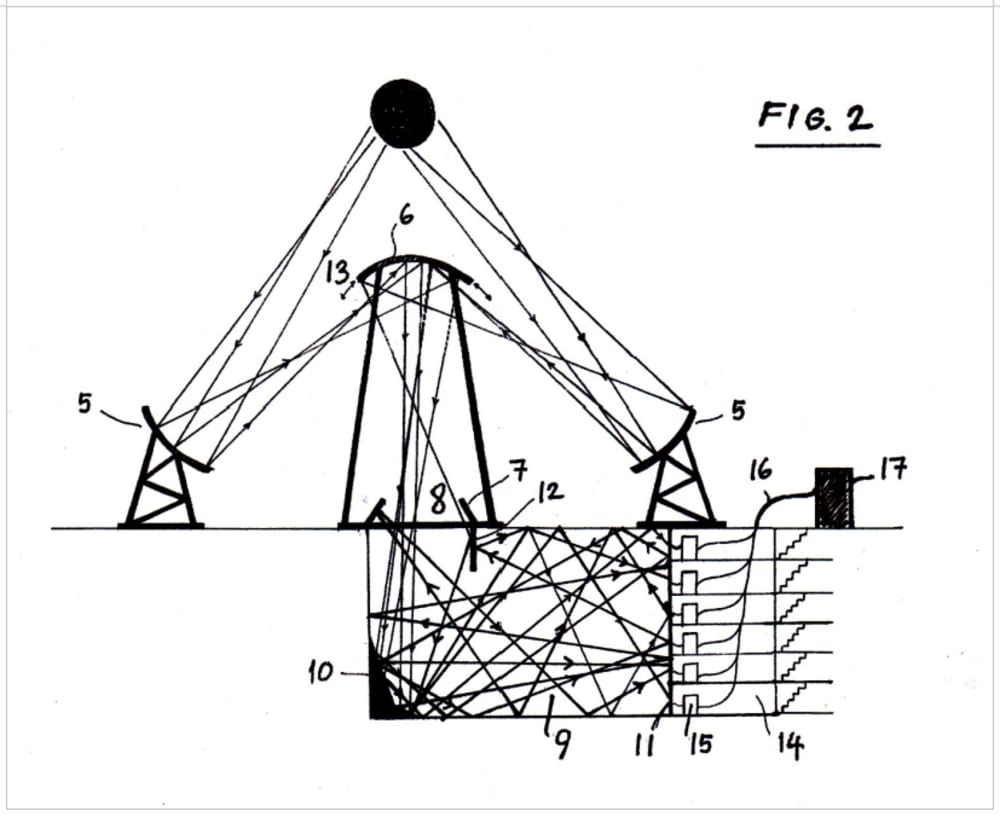 Solution: This new power plant design utilizes three sets of curved mirror arrays in order to divert sunlight towards an aperture, and on to an underground "light room". The light room consists of a wall covered with PV modules; the ceiling, floor and two side walls covered with mirrors; and one side covered with fans that provide cooling for the modules. Fans also create a positive pressure inside the light room, keeping dust and dirt from entering inside. The light room has a gate that can be closed to turn off electricity production in the case of extreme weather events and provide full protection of PV modules.