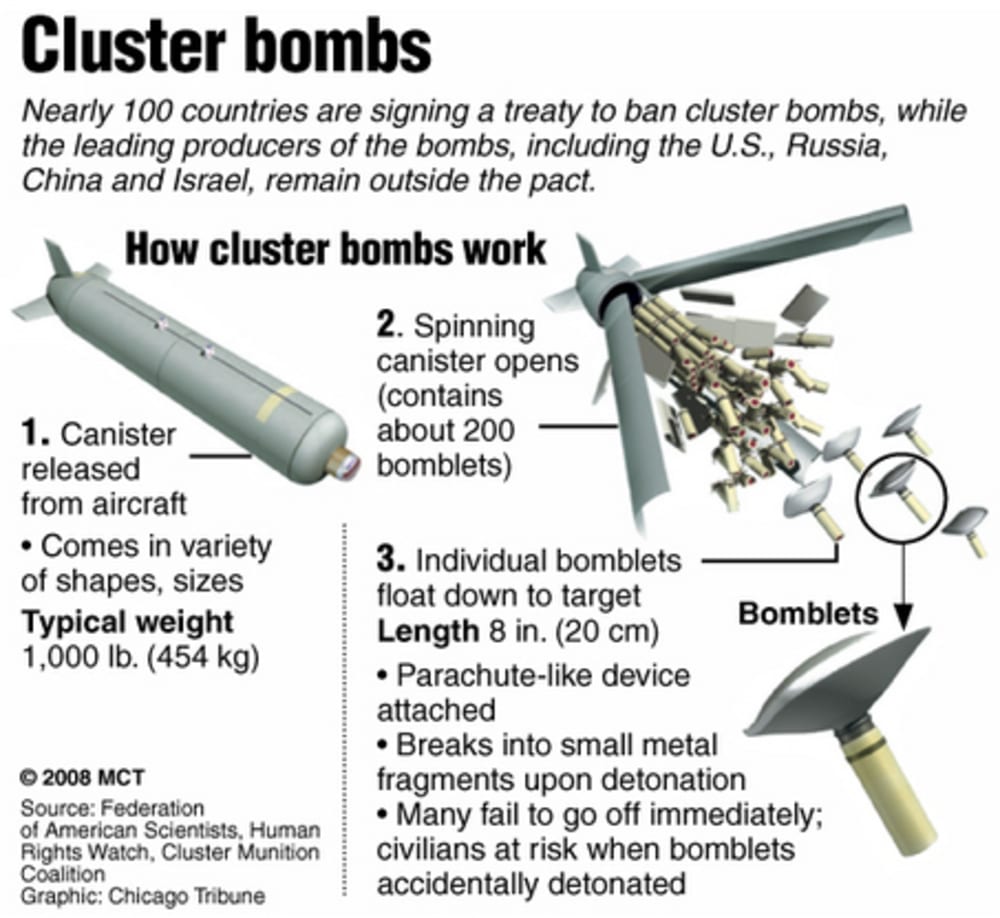 A more sustainable solution is to utilize existing proven military technologies to fight these fires more effectively by modernizing outdated technologies such as cluster bombs (*see illustration). Cluster bombs are not permitted to be usted in warfare because of their generalized destructive potential. However, modified they can in turn be used for the good of mankind instead of wars and destruction. They can be easily modified by exchanging live munitions with bomblets filled with liquified nitrogen. They can be utilized safely and effectively to douse the wildfires by removing the oxygen and heat from the fire triangle. The cluster bombs can be detonated in the air while the bomblets can be designed to explode or detonate mechanically on the ground (*see video). A single cluster bomb can perhaps smother flames the size of many football fields. One can easily visualize airplanes and helicopters modified or retrofitted with mounts to handle the many cluster bombs attached to their wings and/or dropped by helicopters and exploded, at will and remotely while coordinating with ground firefighter crews ensuring the safety of all. The nitrogen is nonpolluting, can dissipate quickly and is heavier than air causing it to settle close to the ground. The costs and safety of modifying the technology would outweigh the billions of dollars lost in damages to property and loss of life.