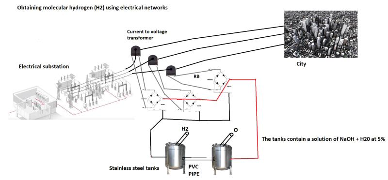 The project consists of using the current demanded by the cities and using it for the generation of hydrogen using current to voltage transformers.