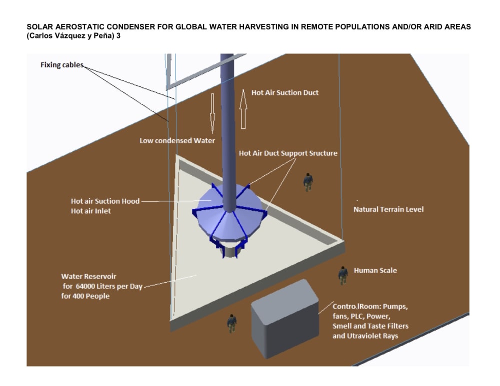 Half of the atmospheric water is concentrated in the first 2 kilometers, allowing this to develop devices that repel humidity and promote the formation of droplets by condensation, which will then precipitate into the water treatment system.